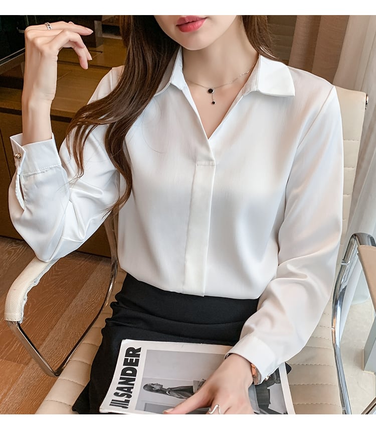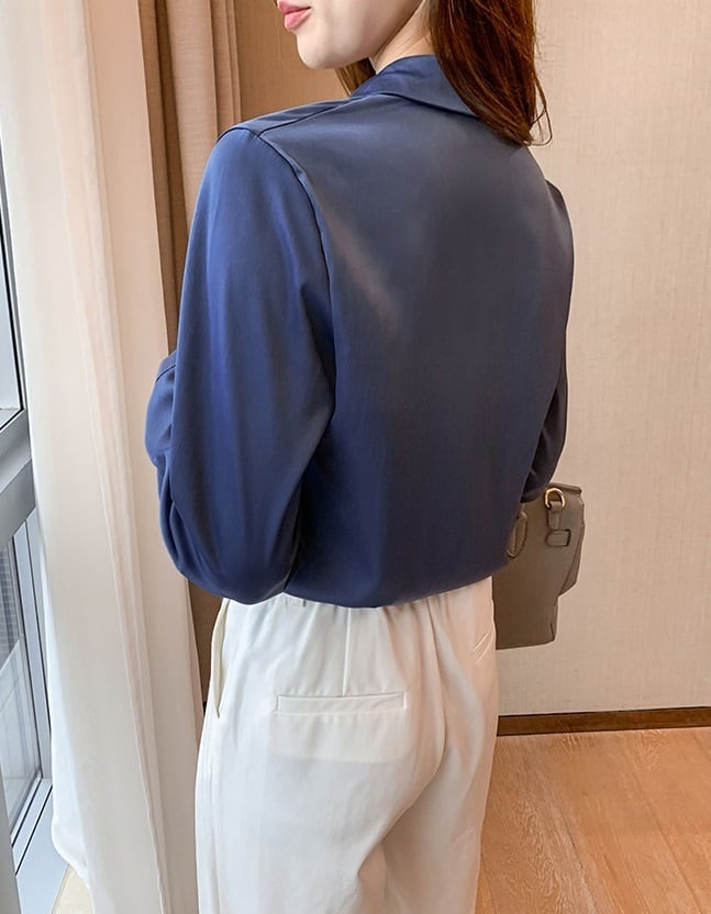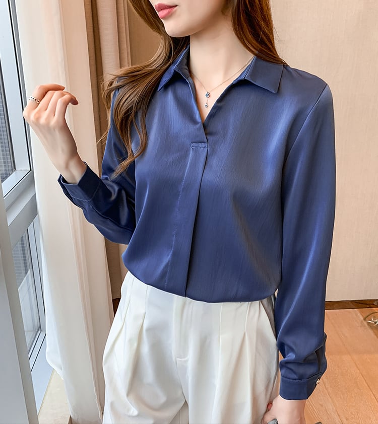 長袖シャツ レディース トップス シャツ ブラウス プルオーバー 襟付き 長袖 きれいめ 仕事 通勤 上品 仕事 オフィス 春 秋 白 青 デート お出かけ 女子会 20代 30代 女性 3XL 4XL 大人 コーデ コーディネート 韓国 ファッション オルチャン お取り寄せ 送料無料 hll-1114