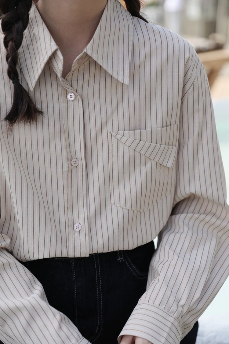 シンプルでカジュアルなストライプ柄の長袖シャツです。