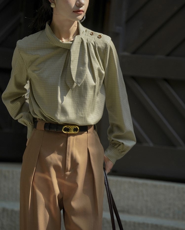 シャツ 長袖シャツ トップス レディース 長袖 スカーフ ネクタイ リボン プルオーバーグリッド柄 格子柄 無地 ルーズ クラシック レトロ カジュアル きれいめ 可愛い お洒落 普段使い 日常使い 普段着 お出かけ デート 女子会 休日 秋 ホワイト 白 S M L 20代 30代 大人 大人可愛い コーデ コーディネート 韓国 ファッション オルチャン お取り寄せ 送料無料 hll-1190