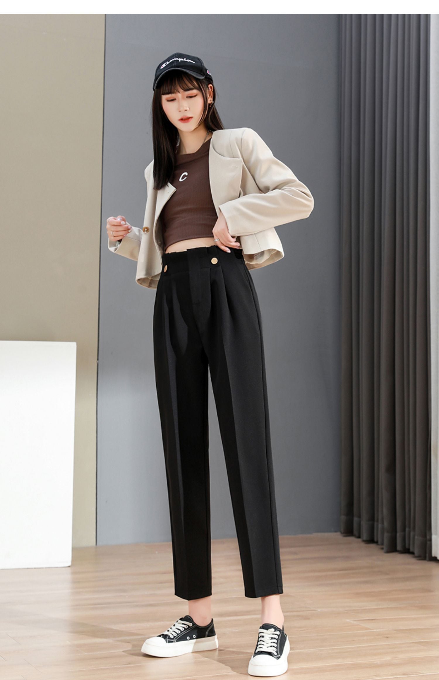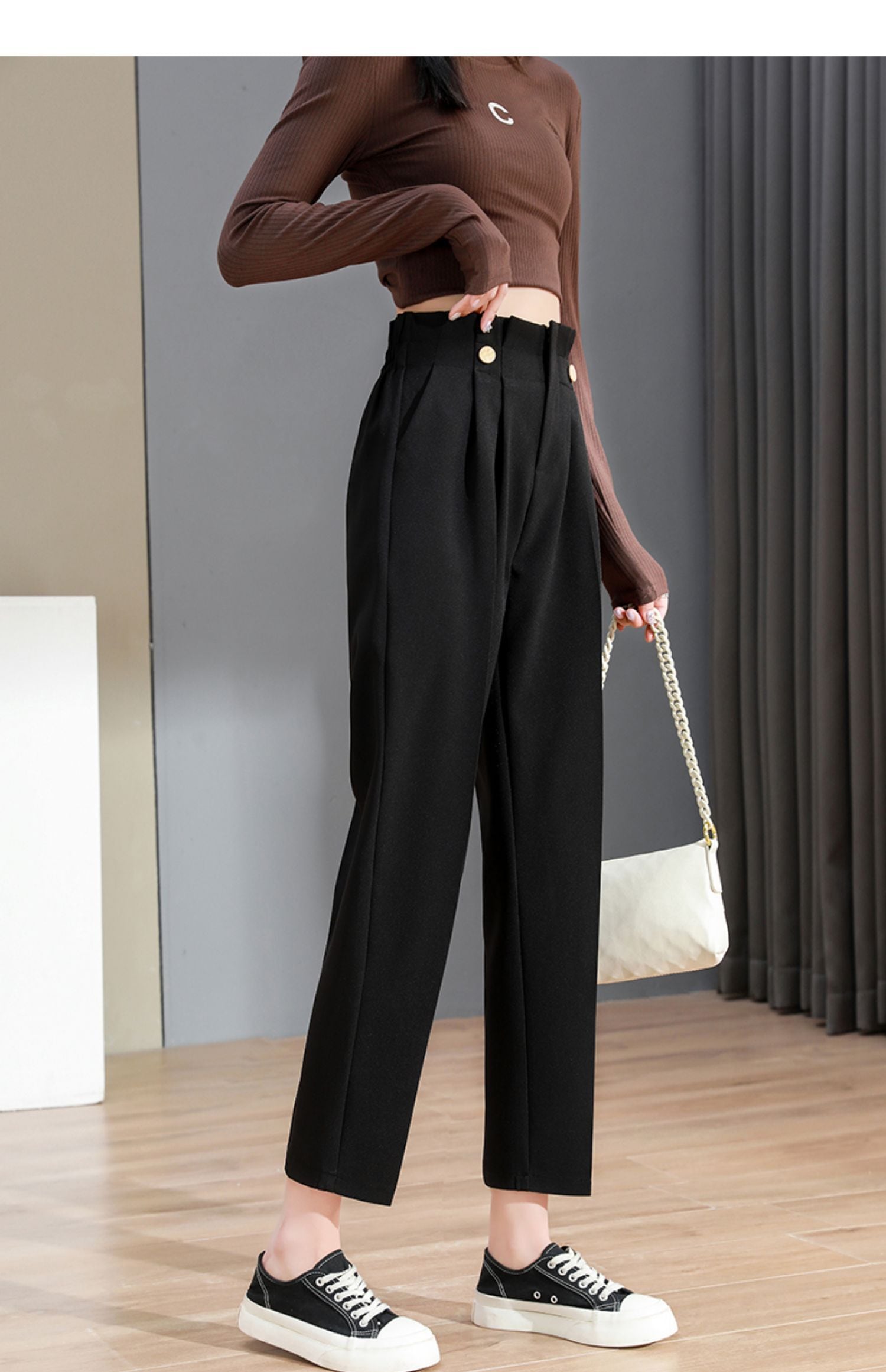 ストレート パンツ レディース ボトムス パンツス スーツ トレート センタープレス ウエストゴム ハイウエスト 脚長 アンクル丈 低身長 きれいめ 上品 仕事 営業 オフィス デート お出かけ 女子 20代 30代 女性 黒 春 夏 秋 3XL 4XL 5XL 大人 コーデ コーディネート 韓国 ファッション オルチャン お取り寄せ 送料無料 hll-1116