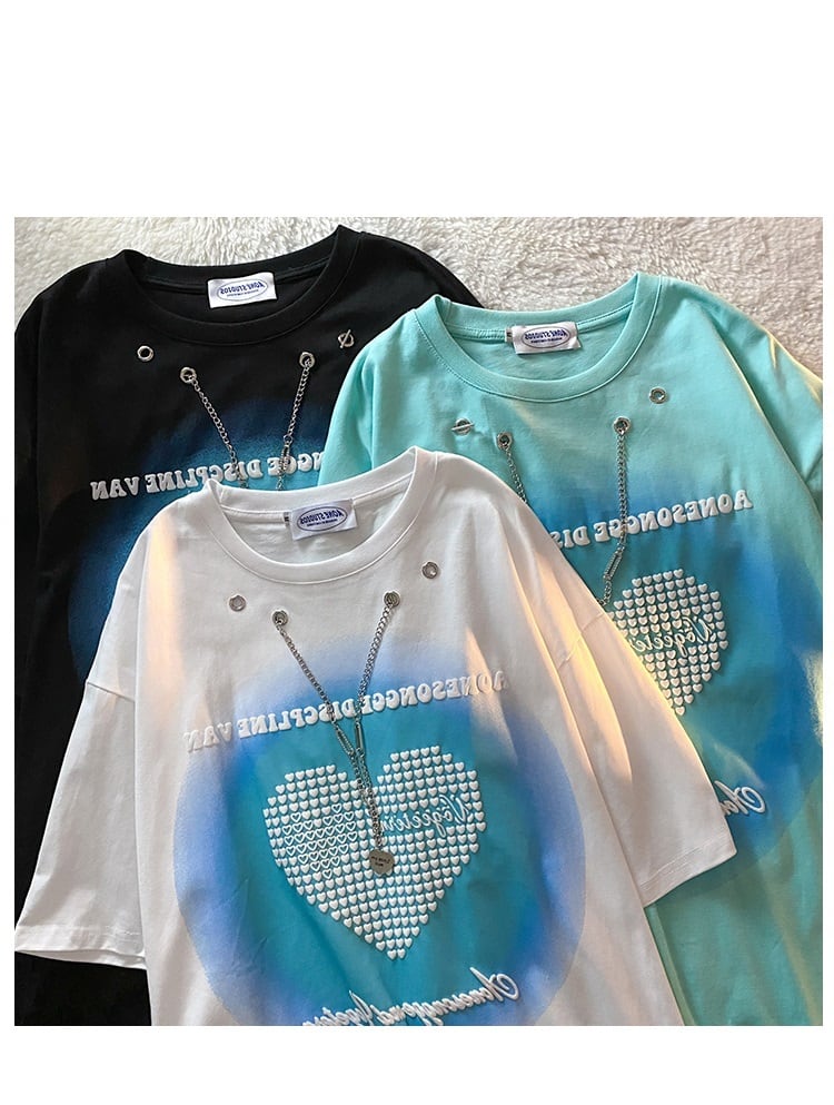 ハートのデザインにチェーンつきで存在感抜群のTシャツ。