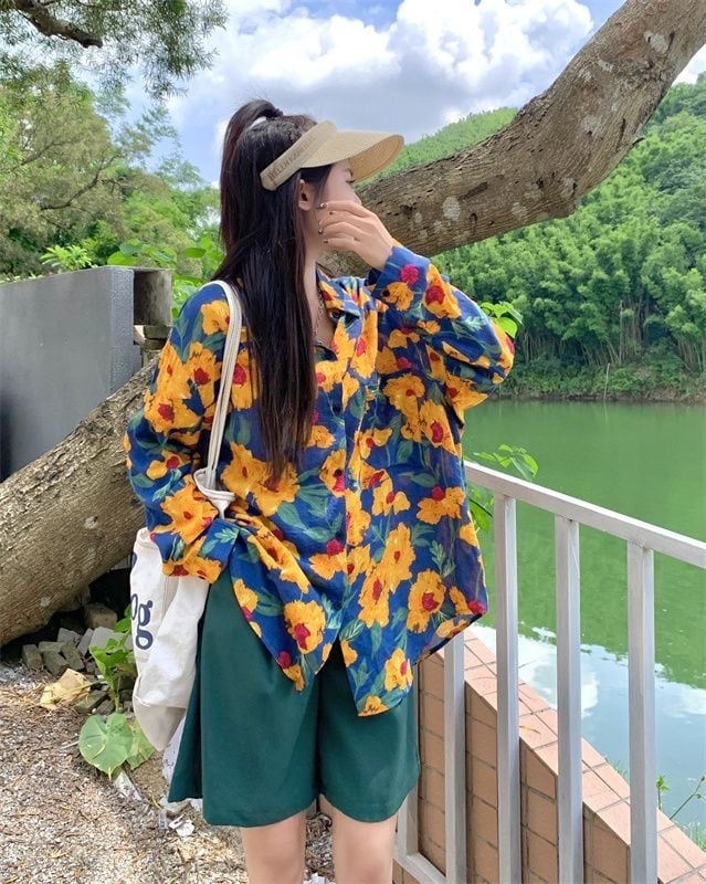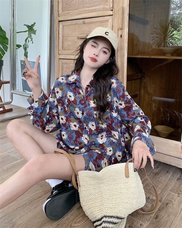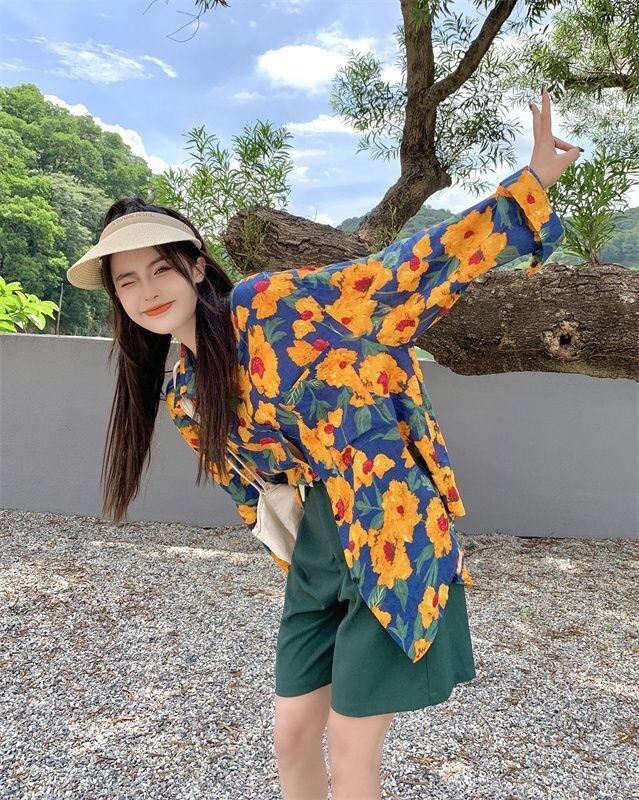 シャツ 長袖シャツ カジュアルシャツ 花柄シャツ 花柄 トップス レディース 長袖 襟付き ポロカラー ボタン 前開き プリント ルーズ レトロ カジュアル きれいめ 可愛い お洒落 普段使い 日常使い 普段着 お出かけ デート 女子会 休日 秋 イエロー 黄色 パープル 紫 S M L XL 2XL 10代 20代 30代 大人 大人可愛い コーデ コーディネート 韓国 ファッション オルチャン お取り寄せ 送料無料 hll-1207