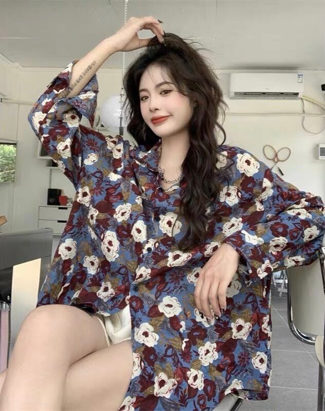 プリントされたレトロな花柄がお洒落な長袖シャツです。