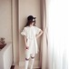 フード付き半袖パーカーとハーレムパンツのセットアップです。