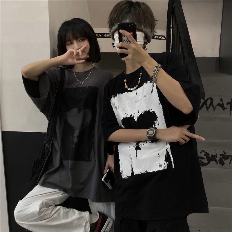 Tシャツ 半袖Tシャツ トップス レディース メンズ ユニセックス 半袖 ラウンドネック プルオーバー ハート ルーズ レトロ カジュアル きれいめ 可愛い お洒落 普段使い 日常使い 普段着 お出かけ デート 女子会 休日 夏 グレー 灰色 ブラック 黒 M L XL 2XL 10代 20代 30代 大人 大人可愛い コーデ コーディネート 韓国 ファッション オルチャン お取り寄せ 送料無料 hll-1212