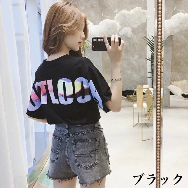 Tシャツ 半袖Tシャツ トップス レディース 半袖 ラウンドネック プルオーバー カラーレター 文字 プリント ルーズ レトロ カジュアル きれいめ 可愛い お洒落 普段使い 日常使い 普段着 お出かけ デート 女子会 休日 夏 ホワイト 白 ブラック 黒 M L XL 2XL 10代 20代 30代 大人 大人可愛い コーデ コーディネート 韓国 ファッション オルチャン お取り寄せ 送料無料 hll-1215