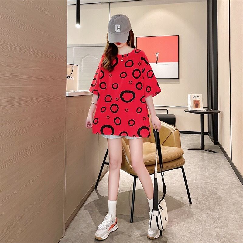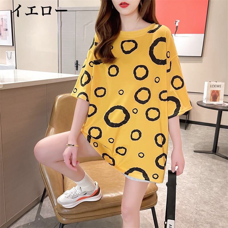 Tシャツ 半袖Tシャツ トップス レディース 半袖 ラウンドネック プルオーバー プリント ルーズ 個性的 レトロ カジュアル きれいめ 可愛い お洒落 普段使い 日常使い 普段着 お出かけ デート 女子会 休日 夏 レッド 赤 イエロー 黄色 ブラック 黒 M L XL 2XL 10代 20代 30代 大人 大人可愛い コーデ コーディネート 韓国 ファッション オルチャン お取り寄せ 送料無料 hll-1217