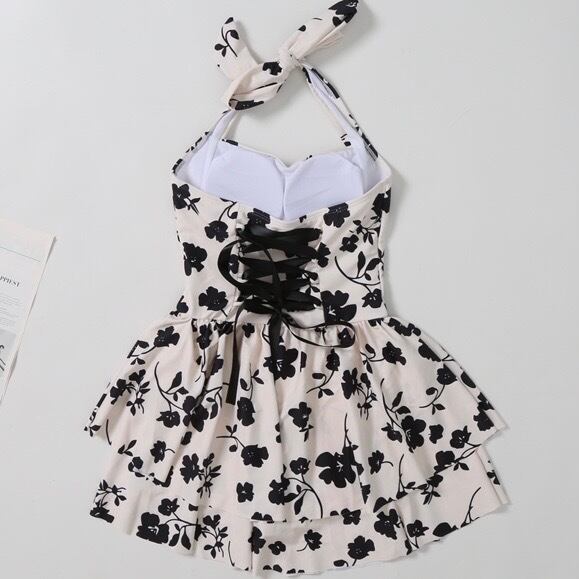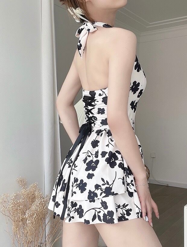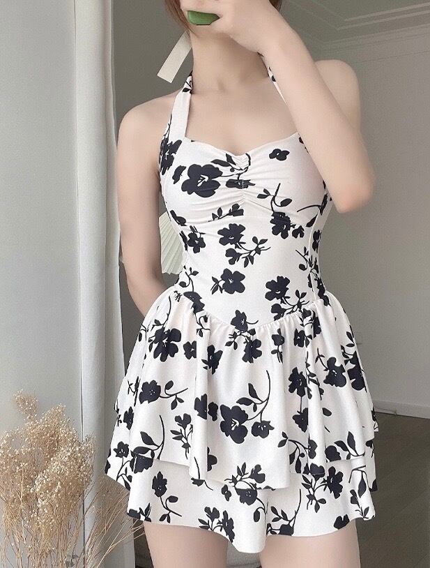 ワンピース水着 カジュアル水着 ワンピース 水着 レディース ホルターネック 花柄 カジュアル 谷間見せ バックレス フェミニン セクシー シック 大人かっこいい きれいめ ビーチ 海 プール リゾート 夏 10代 20代 30代 女性 ホワイト 白 M L XL 大人 コーデ コーディネート 韓国 ファッション オルチャン お取り寄せ 送料無料 hll-1239