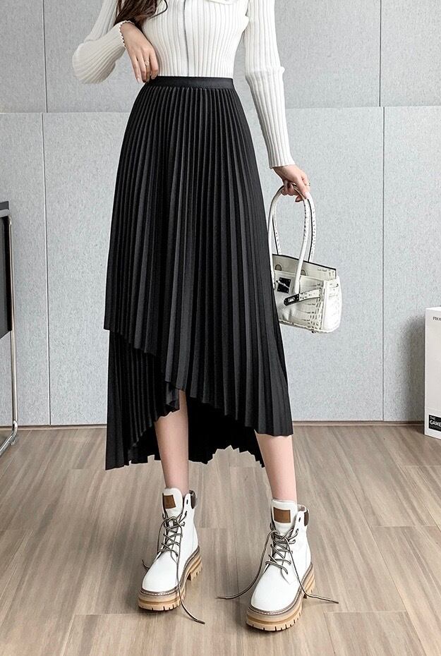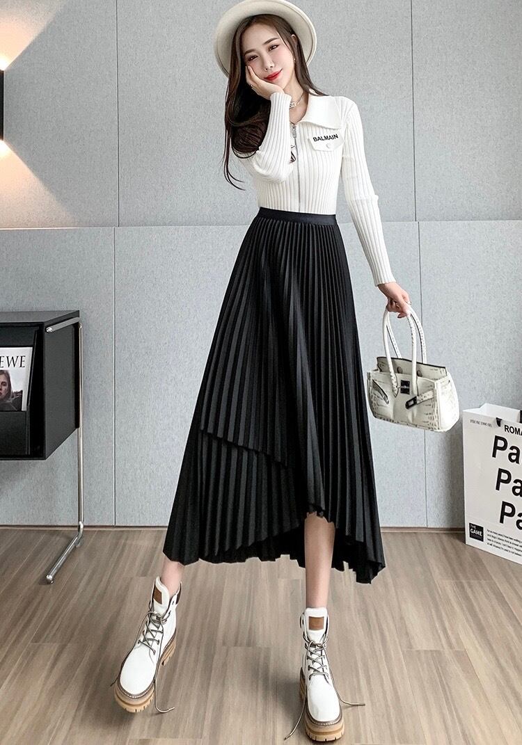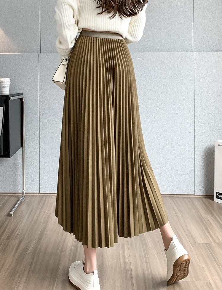 プリーツスカート Aラインスカート ミドル丈スカート ミドル丈 レディース プリーツ スカート ボトムス ハイウエスト 無地 春 カーキ アプリコット ブラック 黒 10代 20代 30代 女性 普段使い 日常使い 普段着 デート お出かけ 女子会 休日 きれいめ 上品 可愛い S M L XL 大人 コーデ コーディネート 韓国 ファッション オルチャン お取り寄せ 送料無料 hll-1268