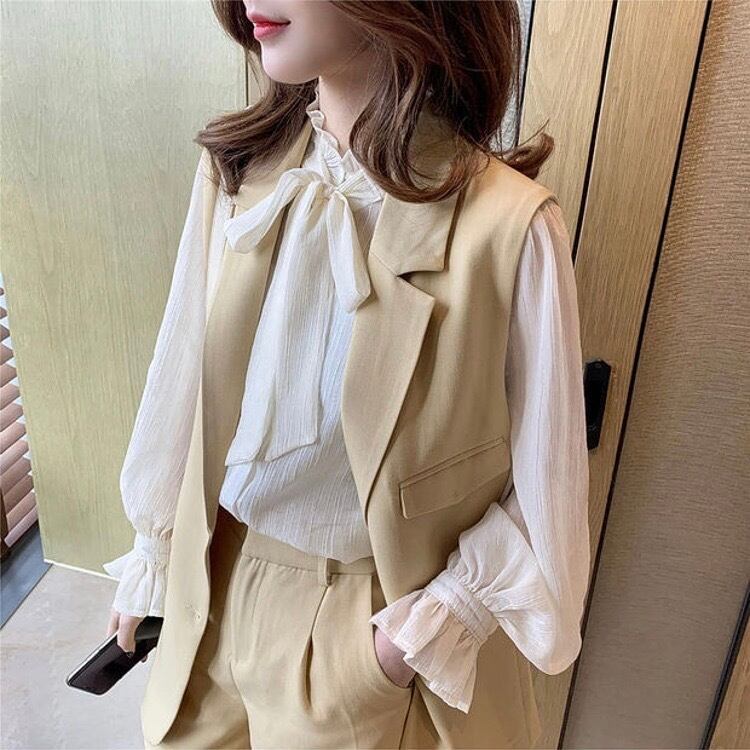 スーツ3点セット セットアップ レディース ベストジャケット 長袖シャツ ショートパンツ ワイドレッグパンツ ショート丈 パンツ 3点セット 上下セット 長袖 リボン カジュアル スリム 大人女子 大人かっこいい お洒落 エレガント 秋 イエロー 黄色 S M L 10代 20代 普段使い 日常使い 普段着 お出かけ 女子会 デート 休日 大人 コーデ コーディネート 韓国 ファッション オルチャン お取り寄せ 送料無料 hll-1309
