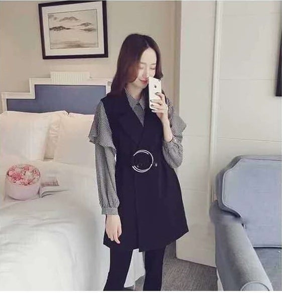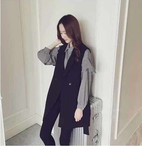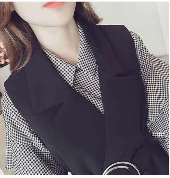 長袖シャツベストセット レディース 2点セット トップス ベスト 長袖 シャツ プルオーバー フリル チェック ベスト ジレ ロング ノースリーブ 襟付き 前開き ボタン きれいめ 仕事 オフィス 通勤 デート お出かけ 女子会 黒 大きいサイズ 3XL 4XL 秋 冬 20代 30代 女性 ママ 大人 コーデ コーディネート 韓国 ファッション オルチャン お取り寄せ 送料無料 hll-1364