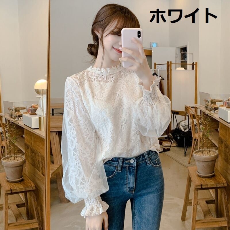 長袖シャツ レディース トップス シャツ 長袖 透け感 スタンドカラー チュール メッシュ ボリューム袖 きれいめ 上品 オフィス 休日 デート 女子会 通勤 20代 30代 女性 ママ 白 春 夏 XL 大人 コーデ コーディネート 韓国 ファッション オルチャン お取り寄せ 送料無料 hll-1362
