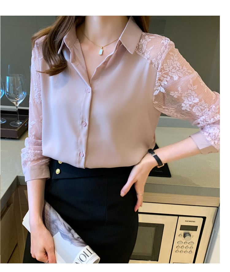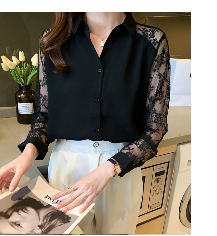 長袖レースシャツ レディース トップス シャツ 長袖 襟付き 前開き ボタン レース きれいめ エレガント 上品 オフィス パーティー お呼ばれ 休日 デート 女子会 20代 30代 女性 ママ 黒 ピンク 春 夏 大人 コーデ コーディネート 韓国 ファッション オルチャン お取り寄せ 送料無料 hll-1384