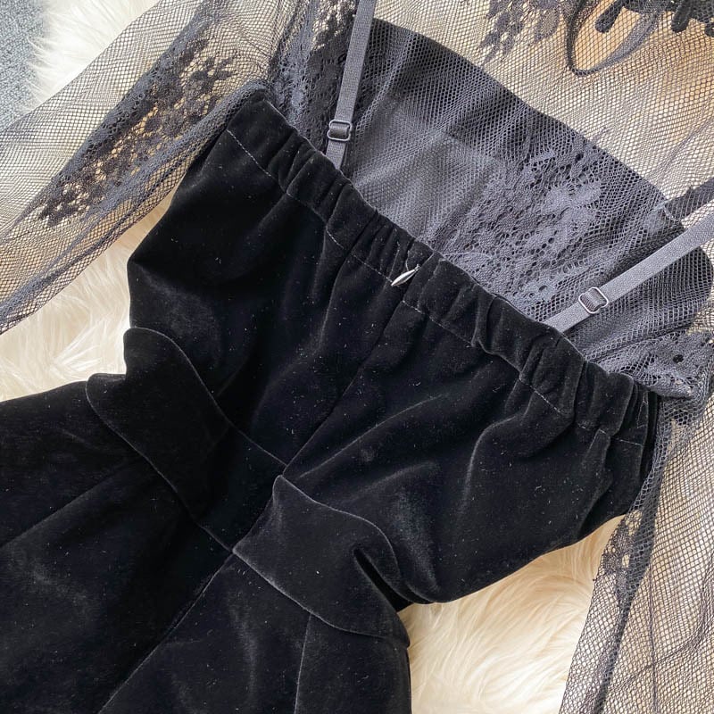 シアーシャツとオールインワンセット レディース 2点セット 長袖 シャツ シアー 透け感 スタンドカラー 刺繍 オーバーオール ジャンプスーツ 黒 ゴールド ボタン ショート パンツ タイト きれいめ 黒 セクシー デート お出かけ 女子会 10代 20代 大人 コーデ コーディネート 韓国 ファッション オルチャン お取り寄せ 送料無料 1439