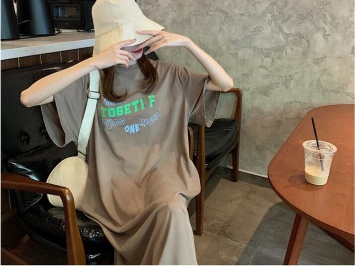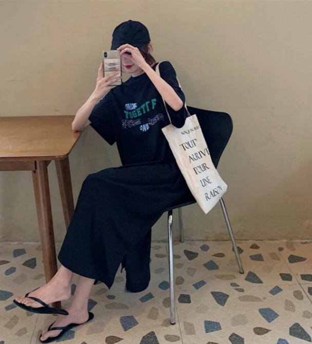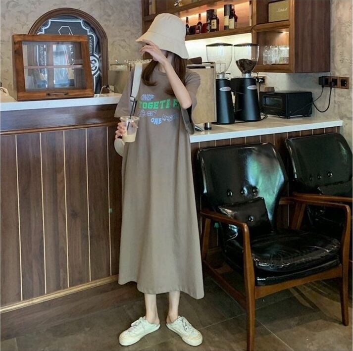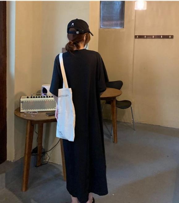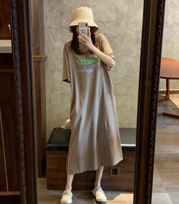半袖ロングワンピース レディース ロング ワンピース 半袖 ラウンドネック プルオーバー ポケット プリント ロゴ カジュアル 体形カバー 楽ちん 休日 デート 女子会 ルームウェア 10代 20代 30代 女性 ママ 春 夏 大人 コーデ コーディネート 韓国 ファッション オルチャン お取り寄せ 送料無料 hll-1431