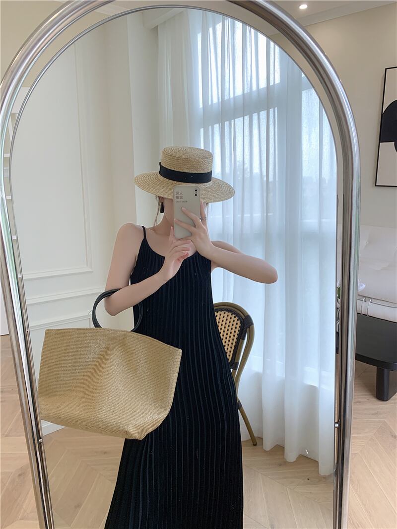 キャミワンピース レディース ノースリーブ キャミ キャミソール ワンピース ロング プリーツ 夏 リゾート 無地 エレガント きれいめ 上品 休日 デート 女子会 海 薄手 黒 10代 20代 30代 女性 ママ 大人 コーデ コーディネート 韓国 ファッション オルチャン お取り寄せ 送料無料 hll-1404