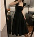 ロングワンピース レディース ノースリーブ ワンピース ワンピ ロング スクエアネック デコルテ きれいめ 黒 無地 フレア Aライン ハイウエスト 20代 30代 女性 ママ XS XL デート お出かけ 女子会 大人 コーデ コーディネート 韓国 ファッション オルチャン お取り寄せ 送料無料 hll-1423