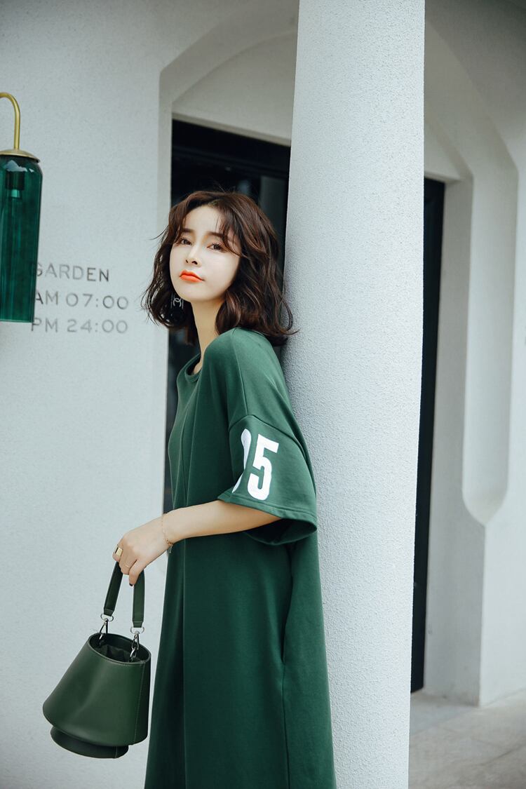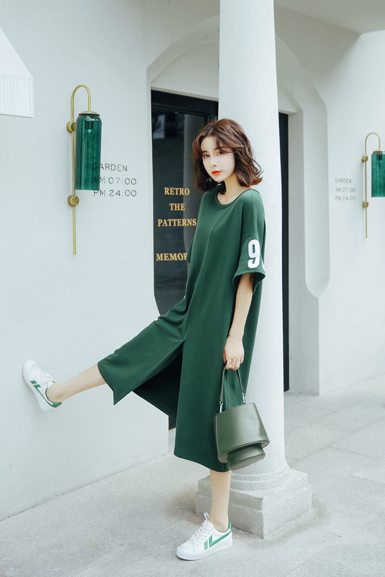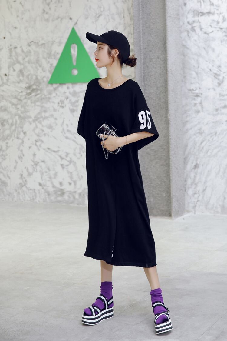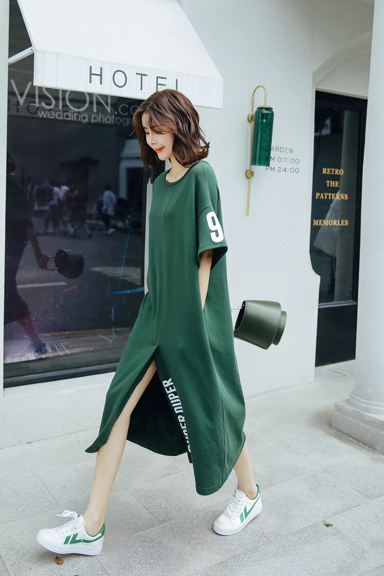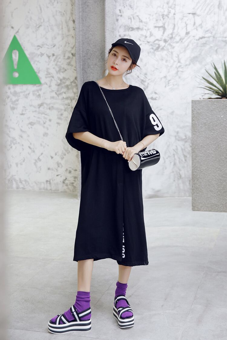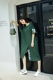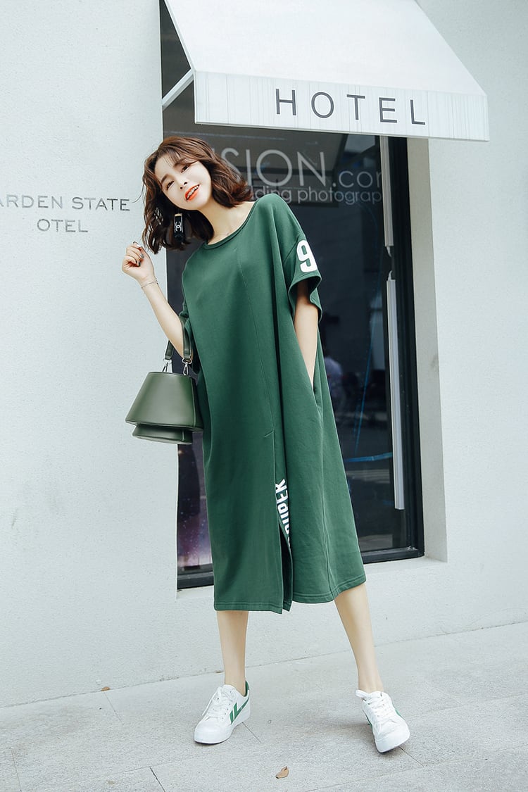 ロングワンピース レディース ワンピース ワンピ ロング スリット ラウンドネック 半袖 ドロップショルダー ロゴ カジュアル ルームウェア スポーティー かわいい 可愛い 日常 デート お出かけ 普段着 10代 20代 30代 女性 ママ 春 夏 黒 大人 コーデ コーディネート 韓国 ファッション オルチャン お取り寄せ 送料無料 hll-1428