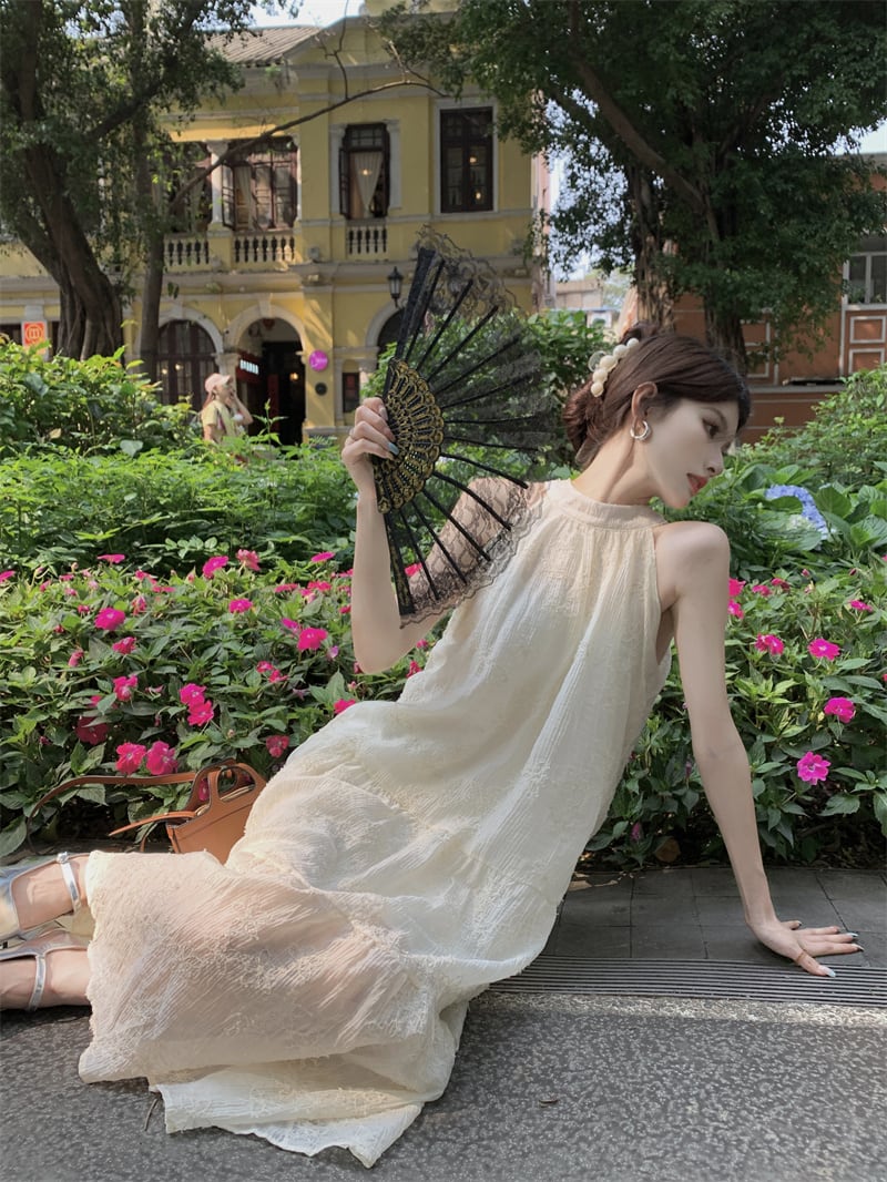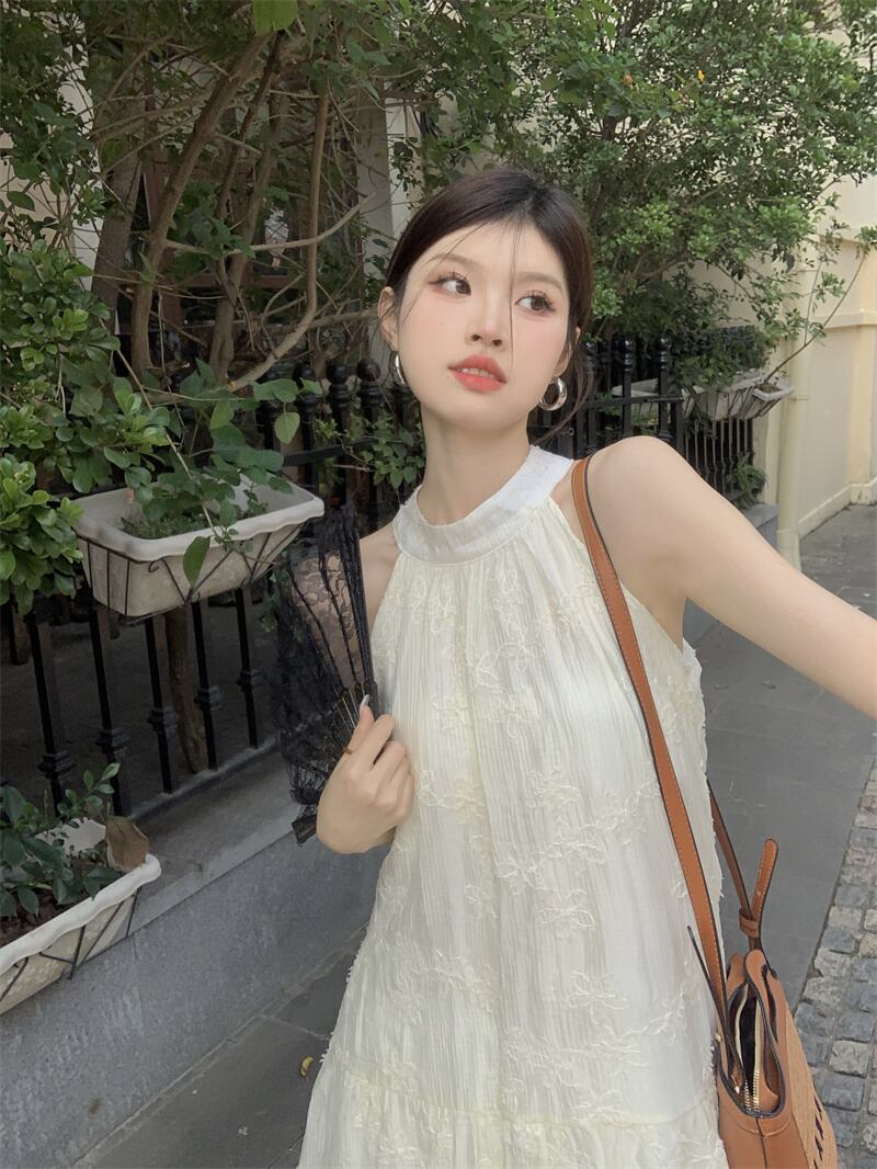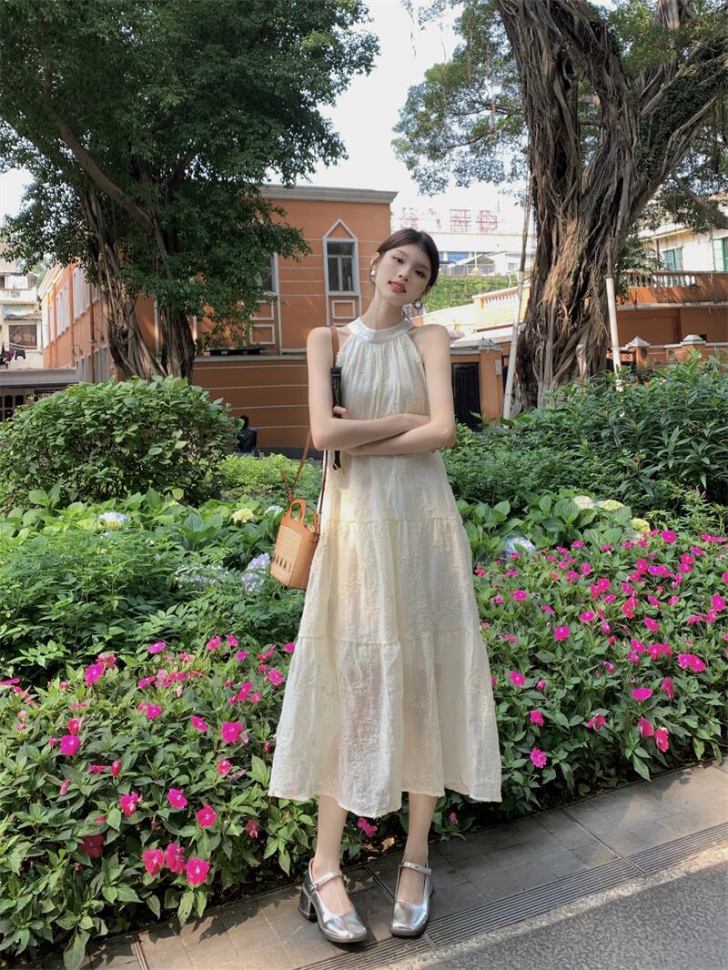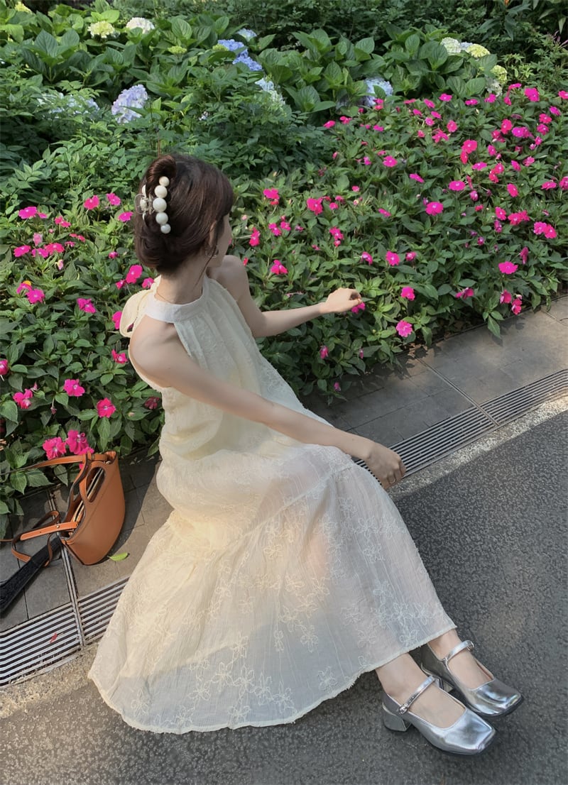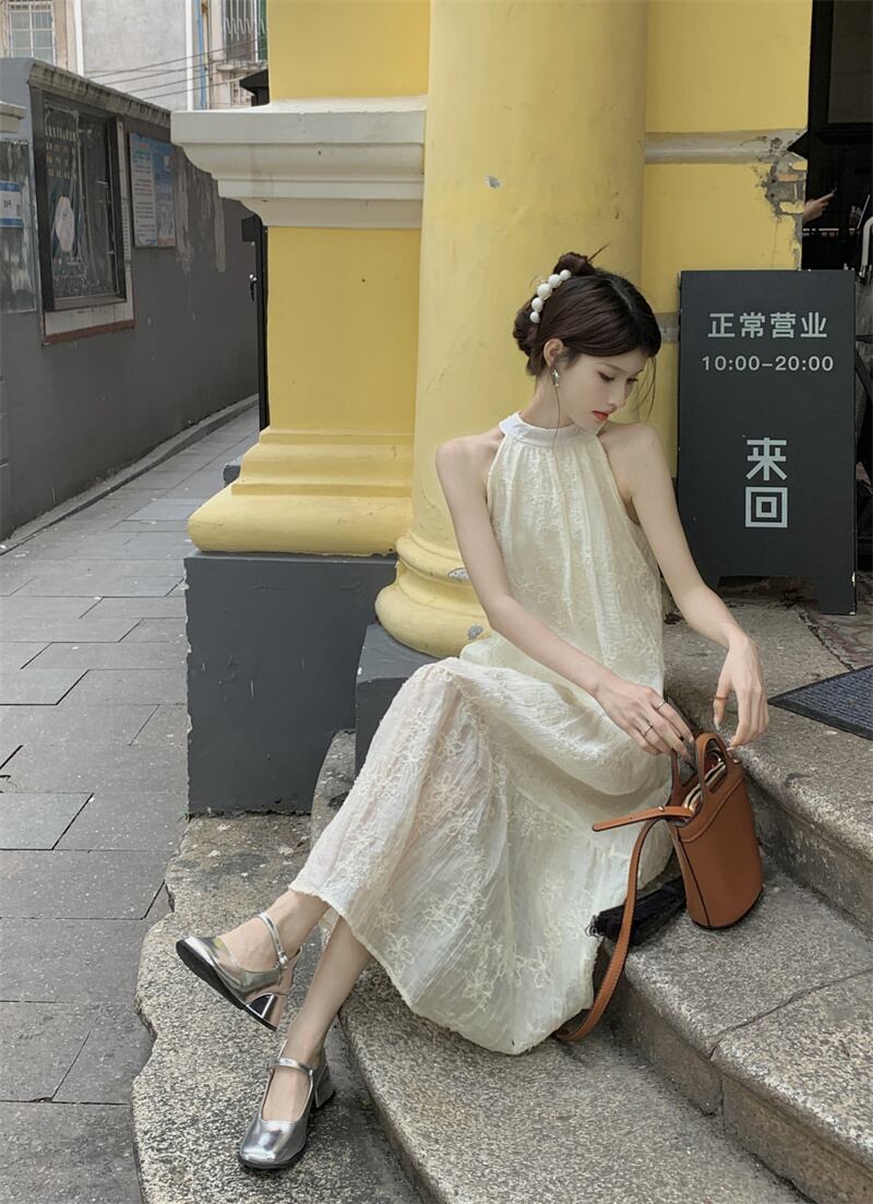 ワンピース レディース ロング ホルターネック フレア Aライン ティアード 透け感 清楚 可愛い 刺繍 デート お出かけ 女子会 リゾート 旅行 白 L 春 夏 10代 20代 大人 コーデ コーディネート 韓国 ファッション オルチャン お取り寄せ 送料無料 hll-1517