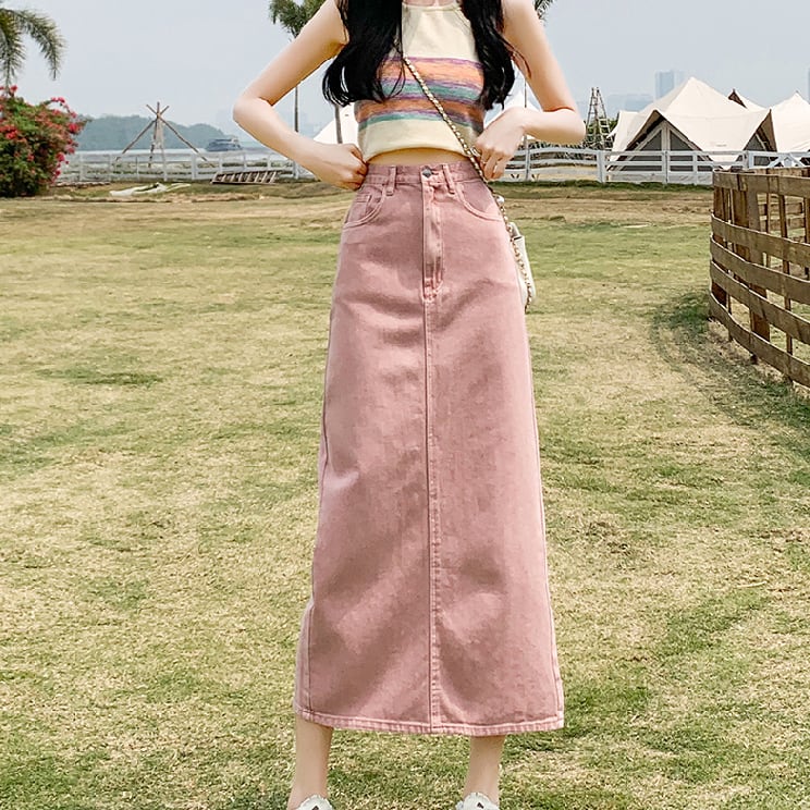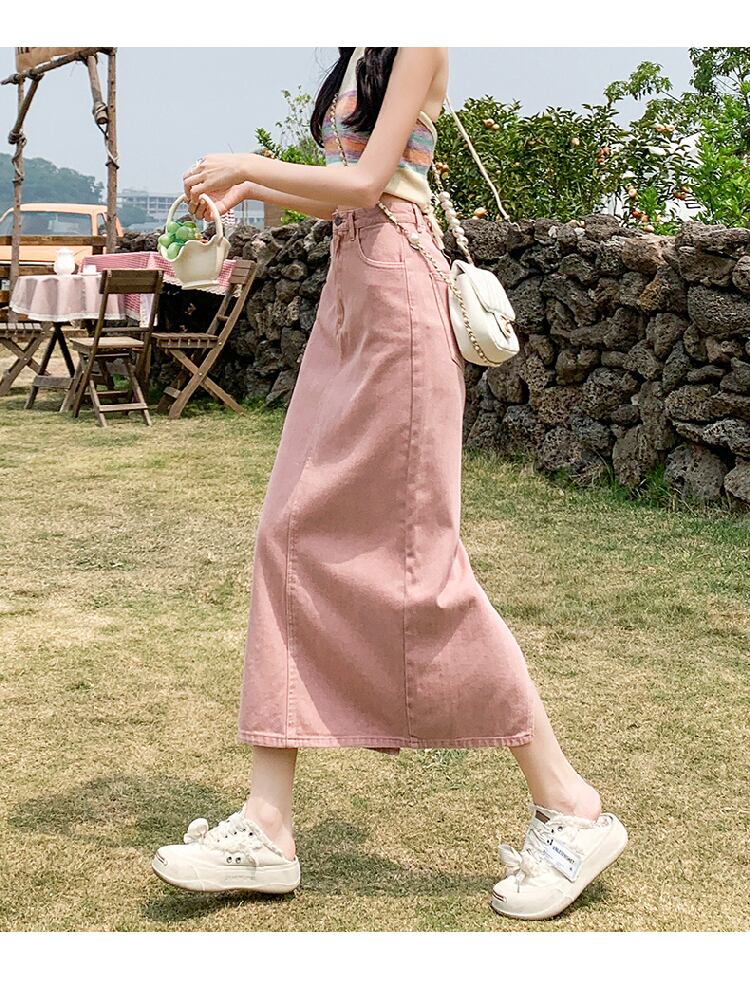 デニムスカート レディース デニム スカート ロング ハイウエスト スリット バックスリット ボタン ファスナー 骨スト ブルべ 無地 歩きやすい 脚長 美脚 こなれ感 普段使い 着回し 日常 デイリー デート お出かけ 女子会 カラーデニム 春 夏 秋 冬 オールシーズン きれいめ XS 2XL ピンク 大きい 小さい サイズ お洒落 おしゃれ オシャレ ハイセンス トレンドアイテム 大人 コーデ コーディネート 韓国 ファッション オルチャン お取り寄せ 送料無料 hll-1687